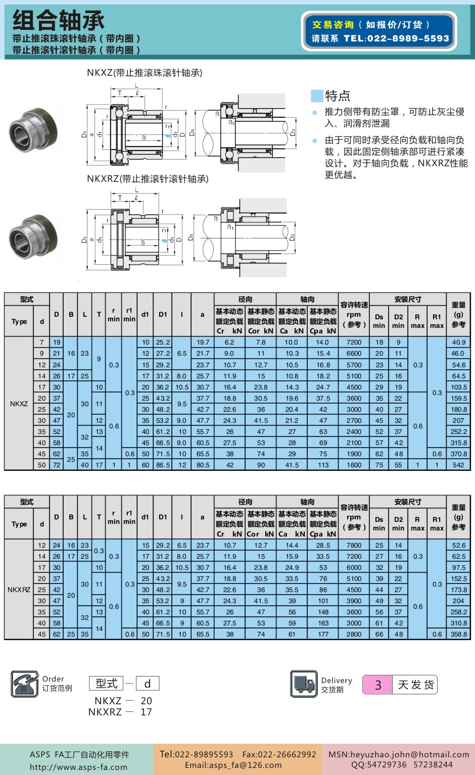 NKXZ/NKXRZ止推滚珠滚柱滚针轴承